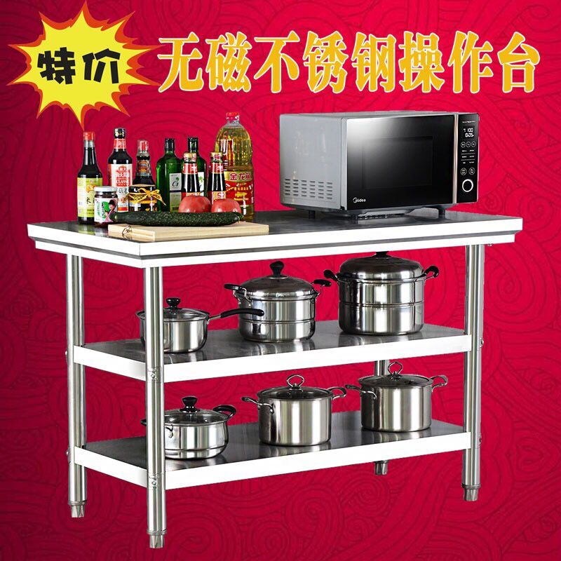 Thick stainless steel workbench three-story operation countertop household case board cutting table Hotel commercial padding hotels