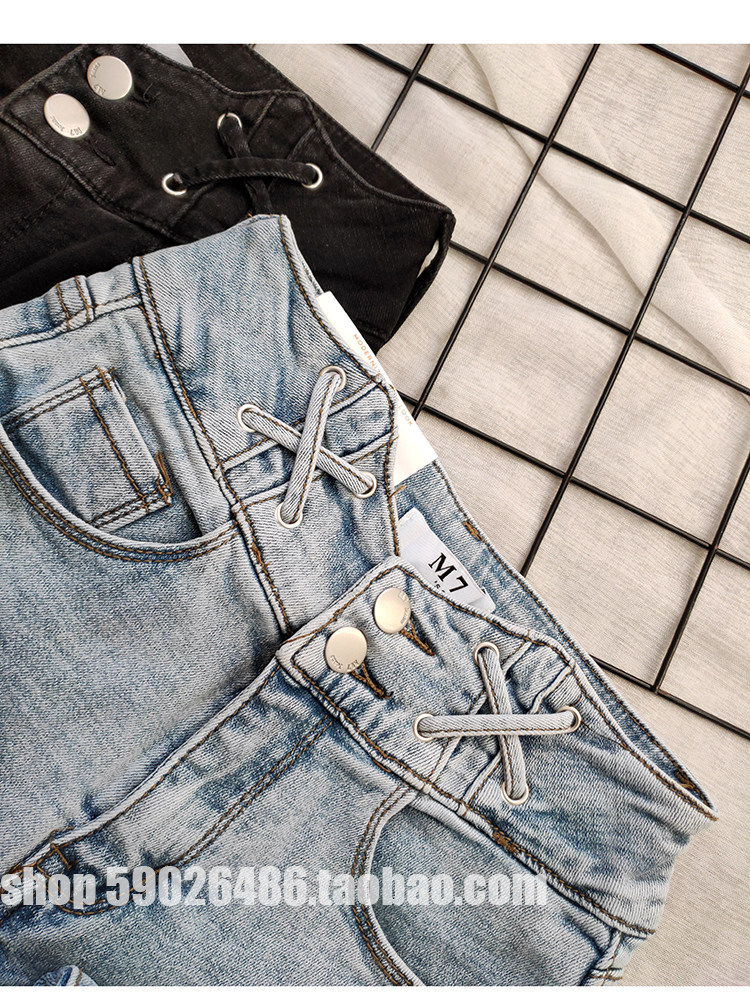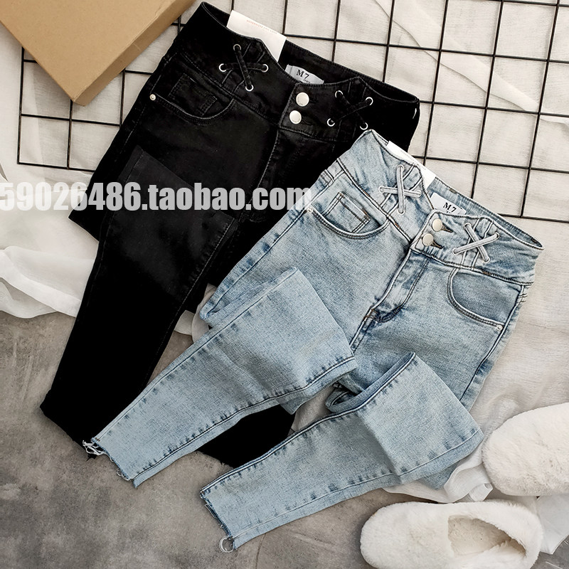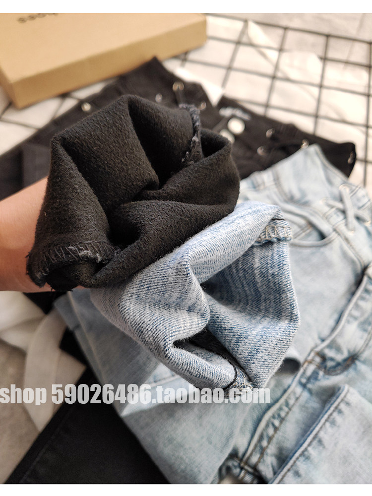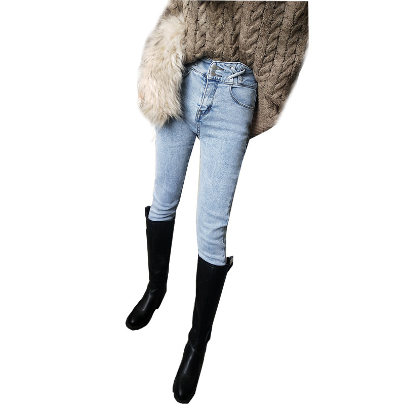 Thin velvet thin fashion light blue and white high-waisted jeans women in winter 2019 thick wild nine points small pants tide