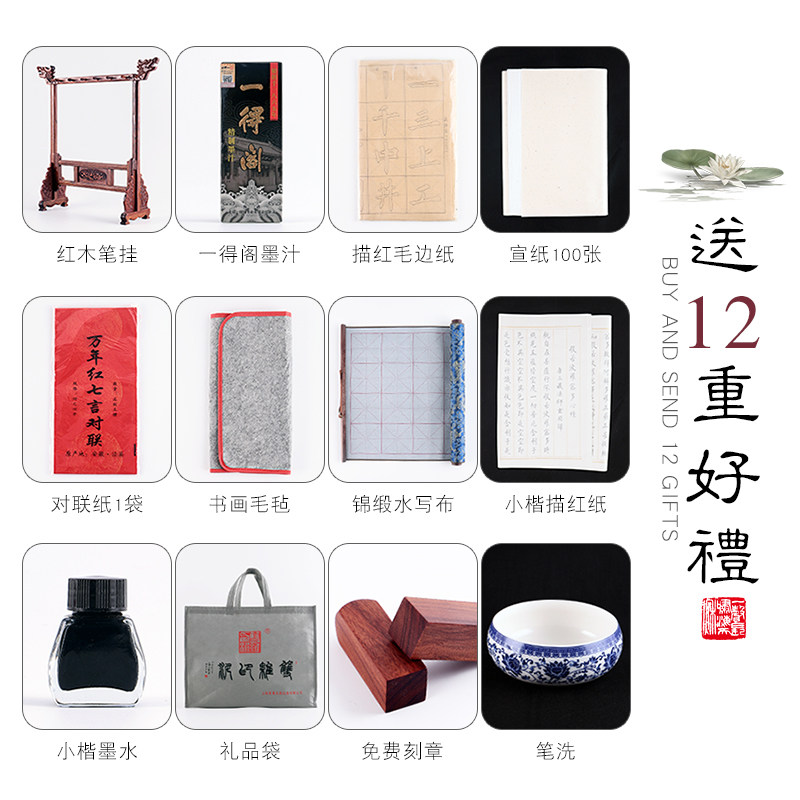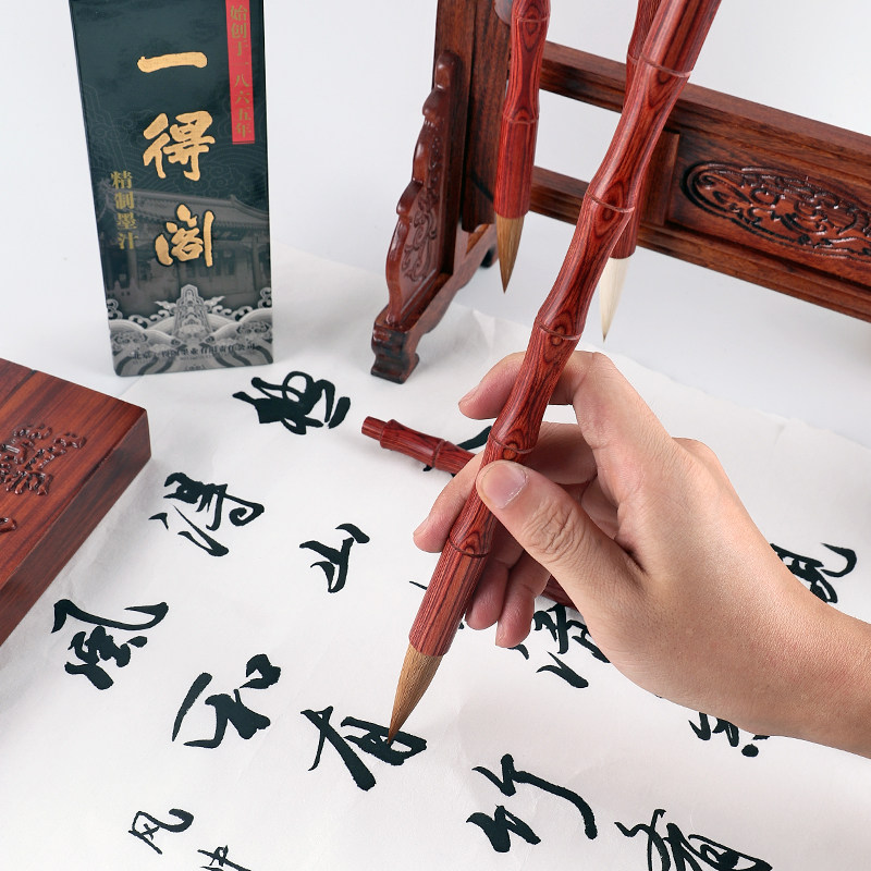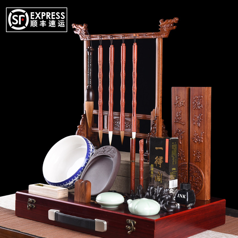 Hanxuantang Wenfang Four Treasures set High-grade pen ink paper Inkstone Adult professional brush calligraphy gift box set Beginner Wenfang gift Calligraphy supplies Boutique Duan Yan Redwood town ruler brush holder
