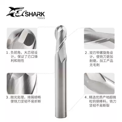 Shark 58 degree aluminum alloy 2-edged tungsten steel ball cutter R0 5 R1 R2 R3 R4 R5 Extended ball milling cutter R6