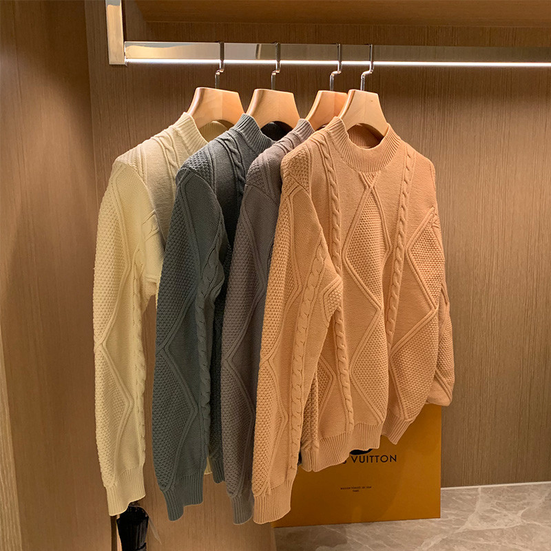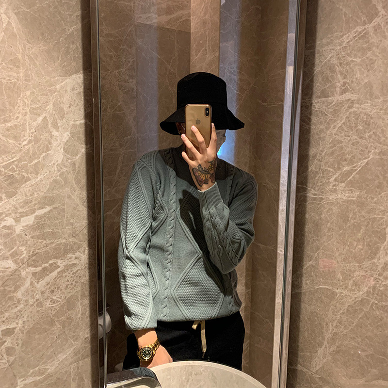 BROTHER winter European and American retro twisted flower woven warm sweater American thick casual pullover sweater men tide