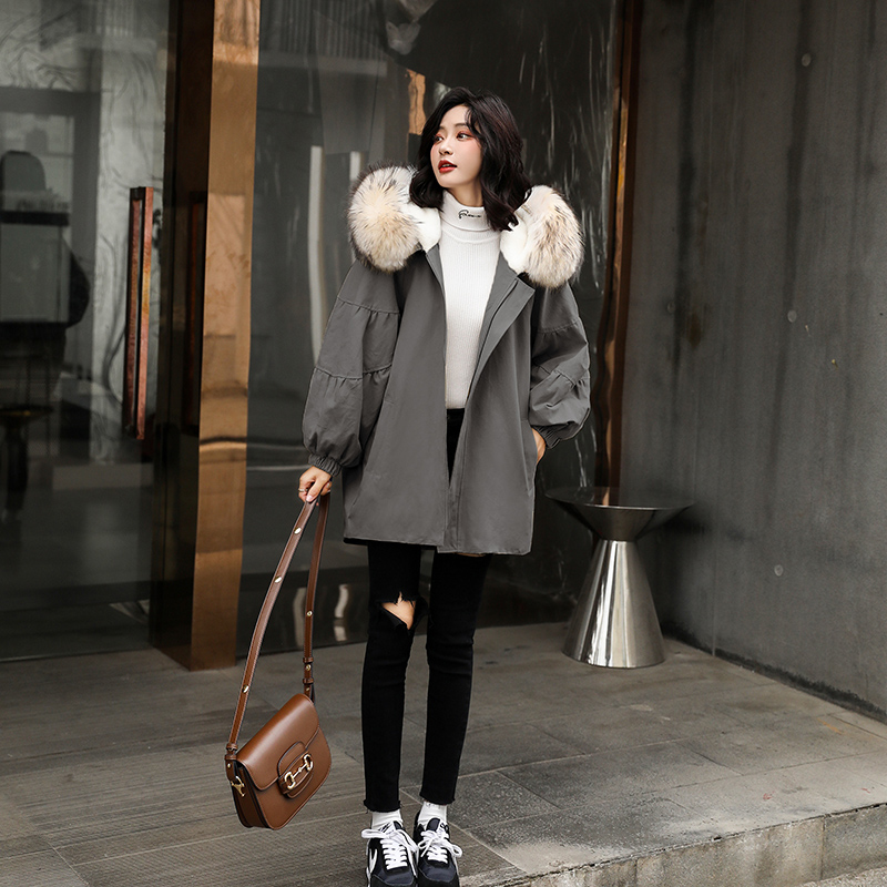 Pike cotton suit woman 2020 new Korean version loose down cotton clothes winter large fur collar plus suede thickened cotton padded jacket