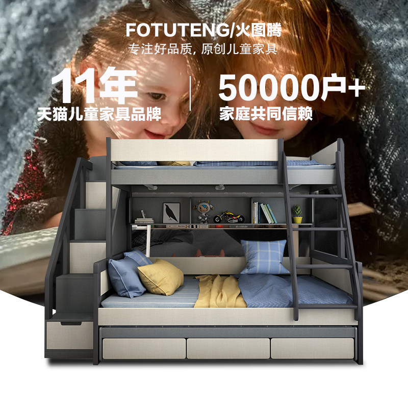 Fire Totem Children's Bed Up And Down Bed Double Bed Solid Wood Upper And Lower Bunk Bed With Small Household Type Staggered Primary And Secondary Bed Low And Low Bed