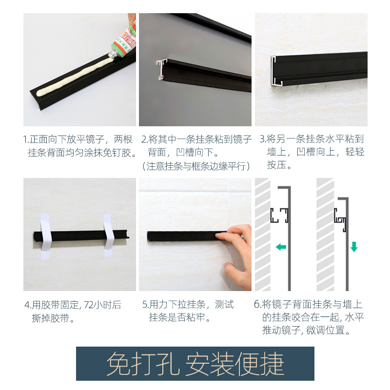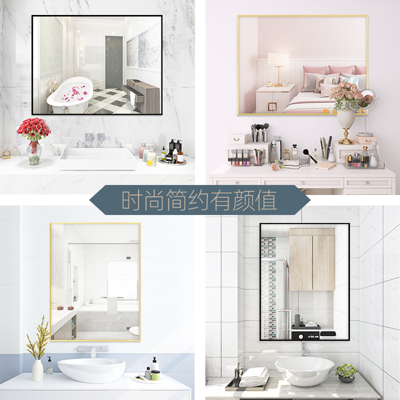 Bathroom mirror wall-mounted self-adhesive toilet Hand washing powder room sink free hole wall-mounted dressing makeup wall-mounted