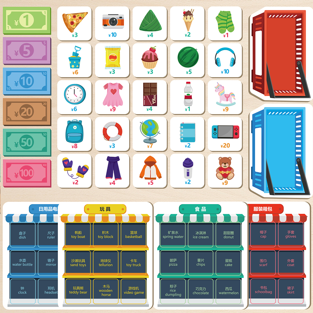 Fat Little Fox Children's board game Toys Math puzzle Parent-child interactive Shopping list Financial business game Genius cashier