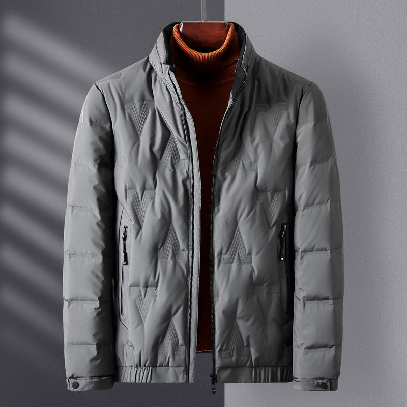 Winter new fashion embossed warm warm down jacket men's thick outdoor stand collar slim down jacket men