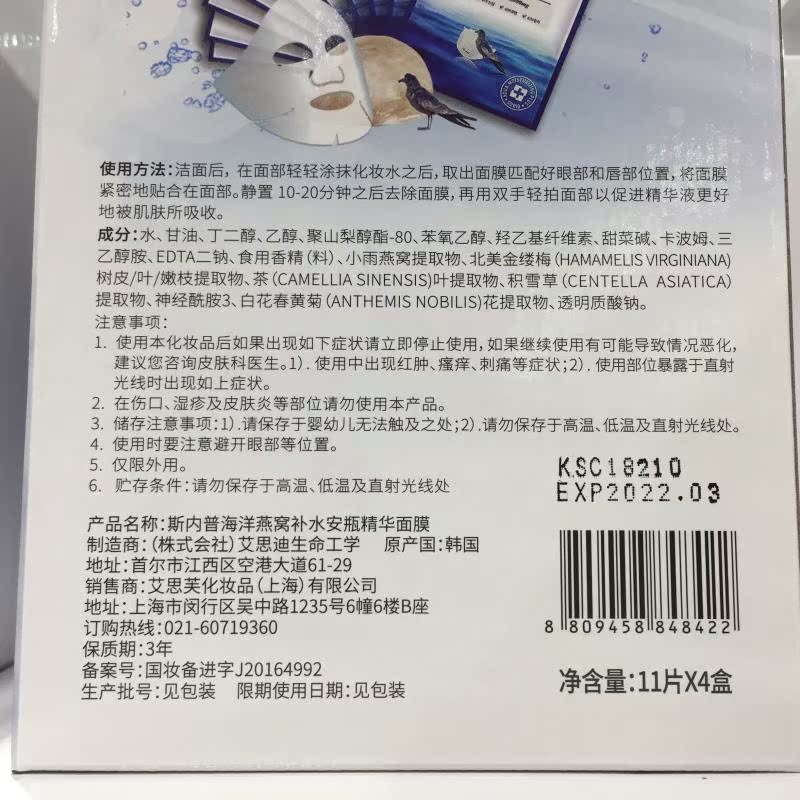 SNP MASK Ocean Swallow's Nest Water Mask 44 slices South Korea's Shanghai Costco Domestic