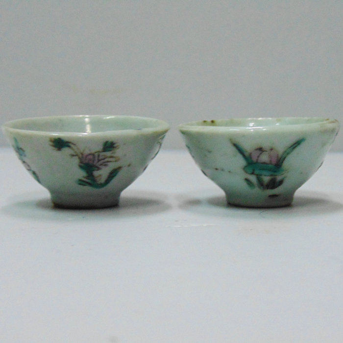 Folklore Objects Cultural Wine Collection Film and TV props Republic of China Hand-painted Gasawara Flower Wine Glasses Pair