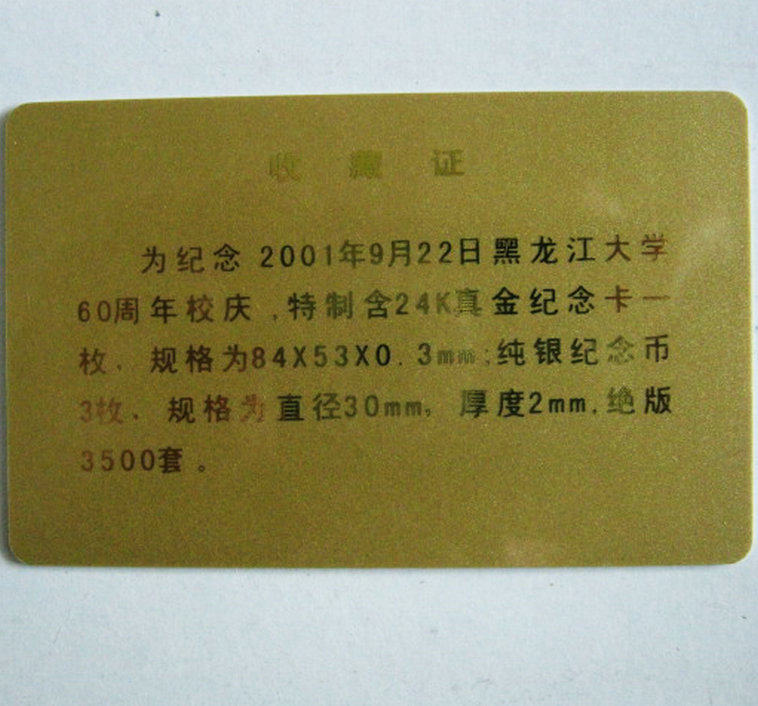 Campus Card Collection of Heilongjiang University 60 Anniversary with 24K Golden Card Silver coin set
