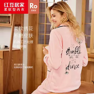 Coral velvet pajamas women winter plus velvet padded set red beans large size loose casual flannel home wear autumn and winter