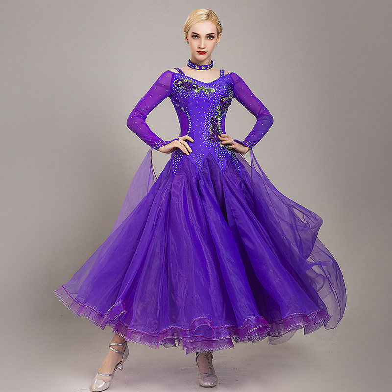 New hot drill modern dance dress national standard dance suit waltz social dance big swing long skirt modern dance suit