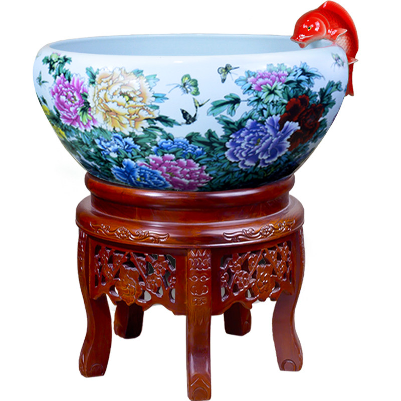 Jingdezhen ceramic fish tank fish basin water circulating water living room home fish farming landscaping Lanshou goldfish tank large