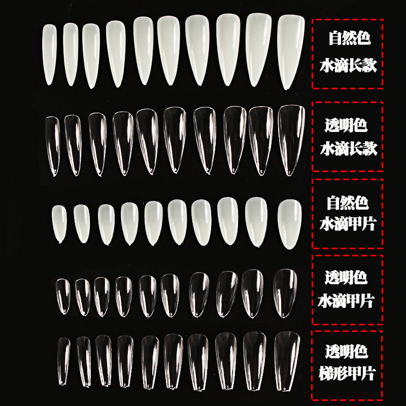 Tip-shaped salon transparent nail-shaped salon natural nail salons water drop A clear water drop A piece of natural trapezoidal chia-sheet transparent trapezoidal nail-sheet nature