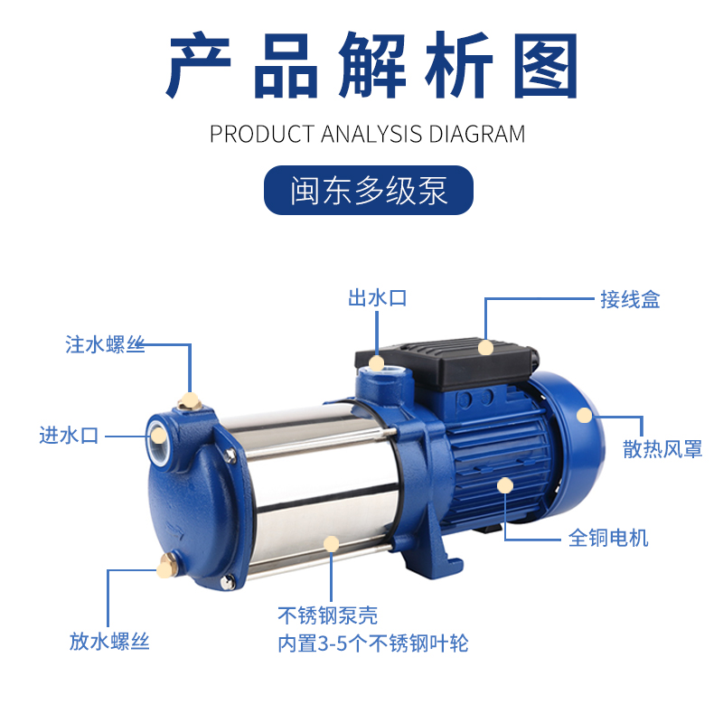 Multistage pump for high - lift agricultural irrigation large flow stainless steel pump for household 220V well pump