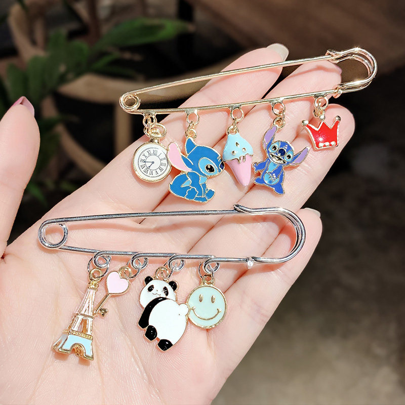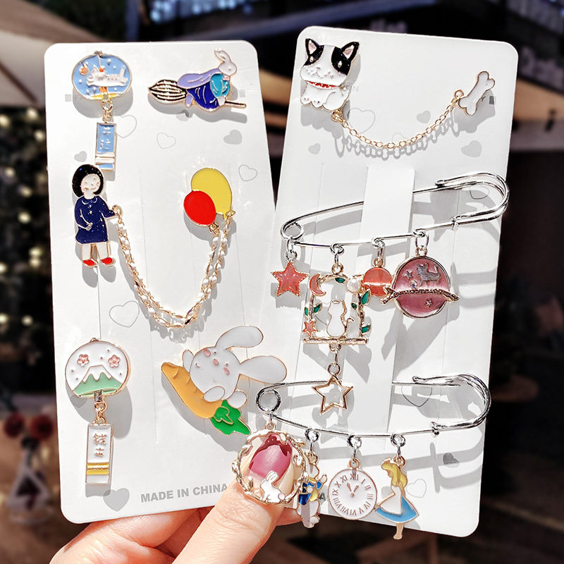 Cute Day Family Chest Pins and Tide Anti-Walk Light Buckle Individuality Buckle Pin Fixed Dresses Cartoon Do N't Kits Bag Accessories Women