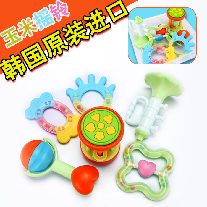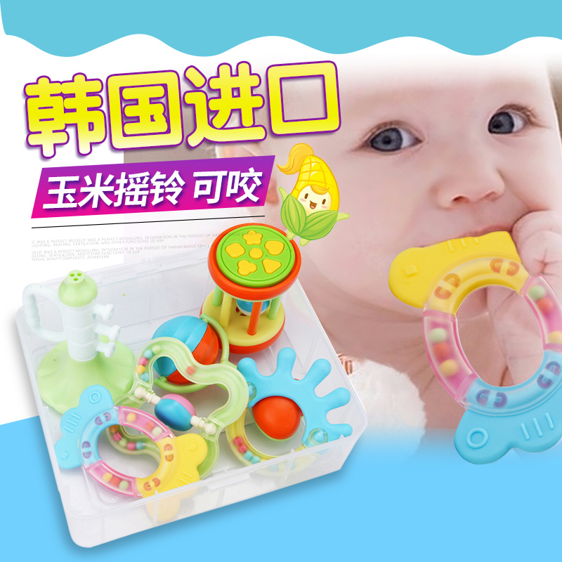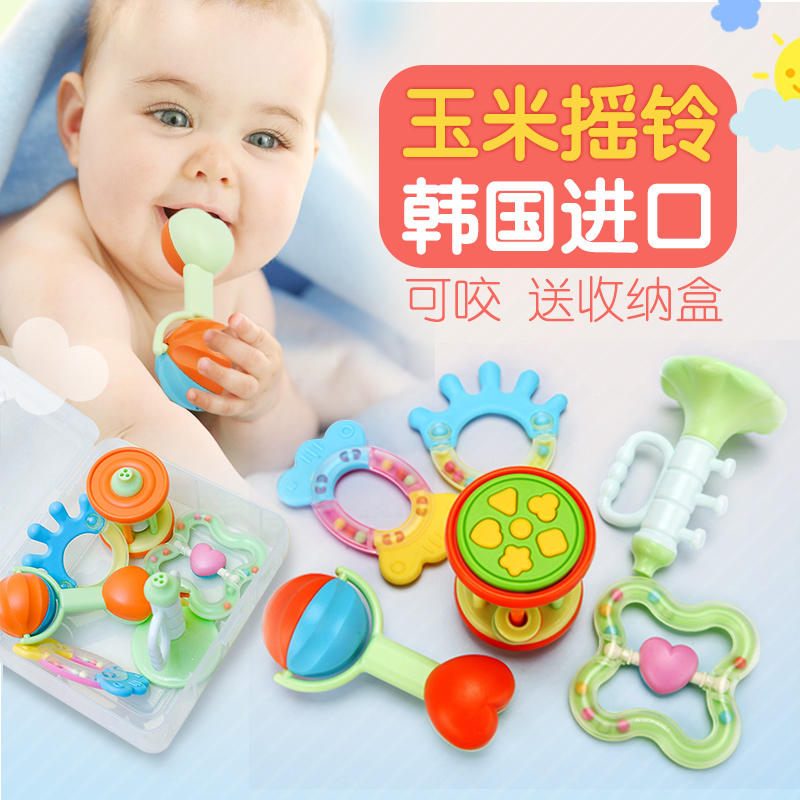 Korean baby rattles 0-1 years old Baby toy tooth retainer 3-6-12 months Early education bells Toddler hand rattles