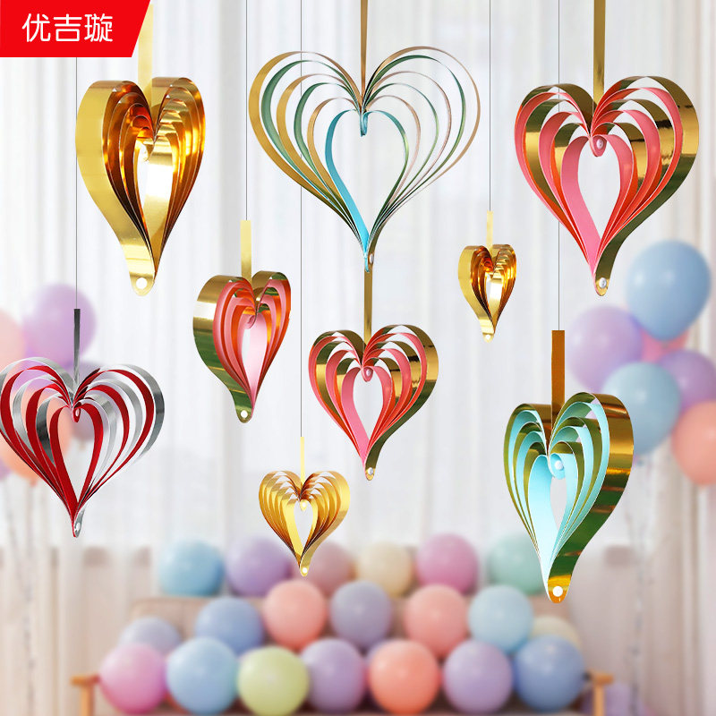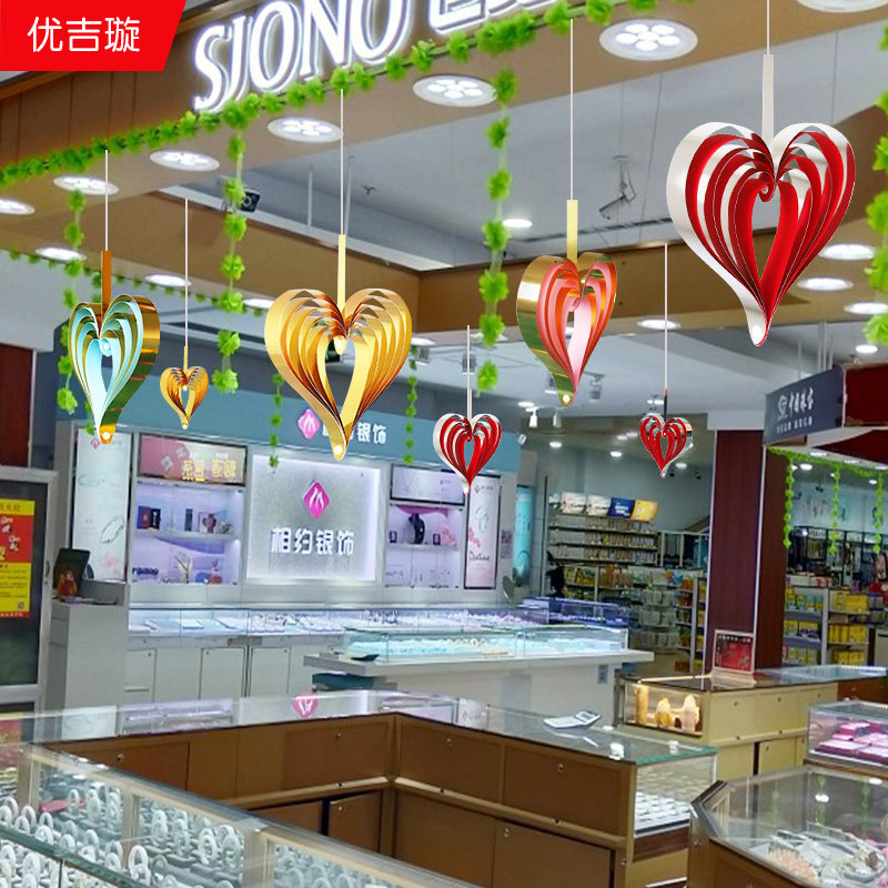 Beauty salon KTV shop scene layout creative window decoration three-dimensional heart-shaped gold powder hanging decoration