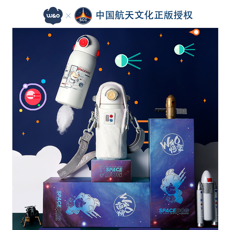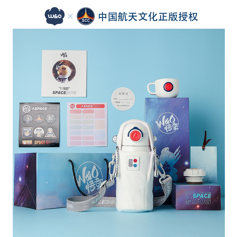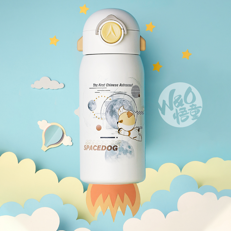 Wu Tong space dog Xiaopao Children's water cup Insulation cup with straw dual-use male and female kindergarten primary school students kettle