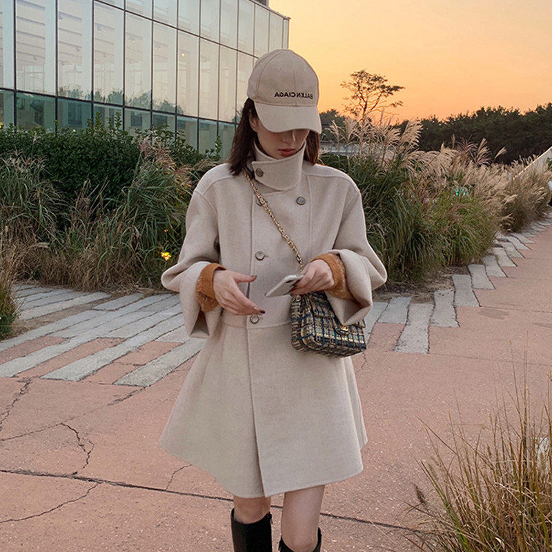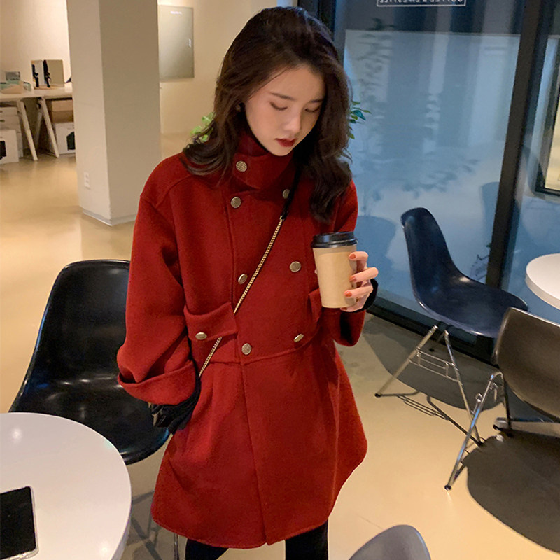 2022 new red short woolen coat autumn and winter temperament winter gentle Hepburn cape woolen coat