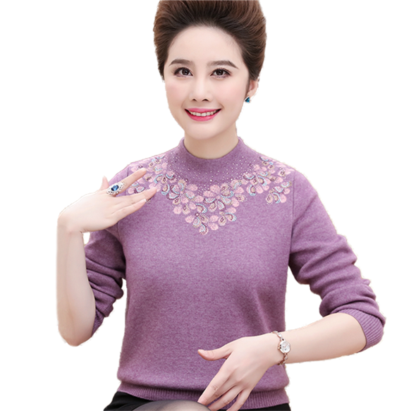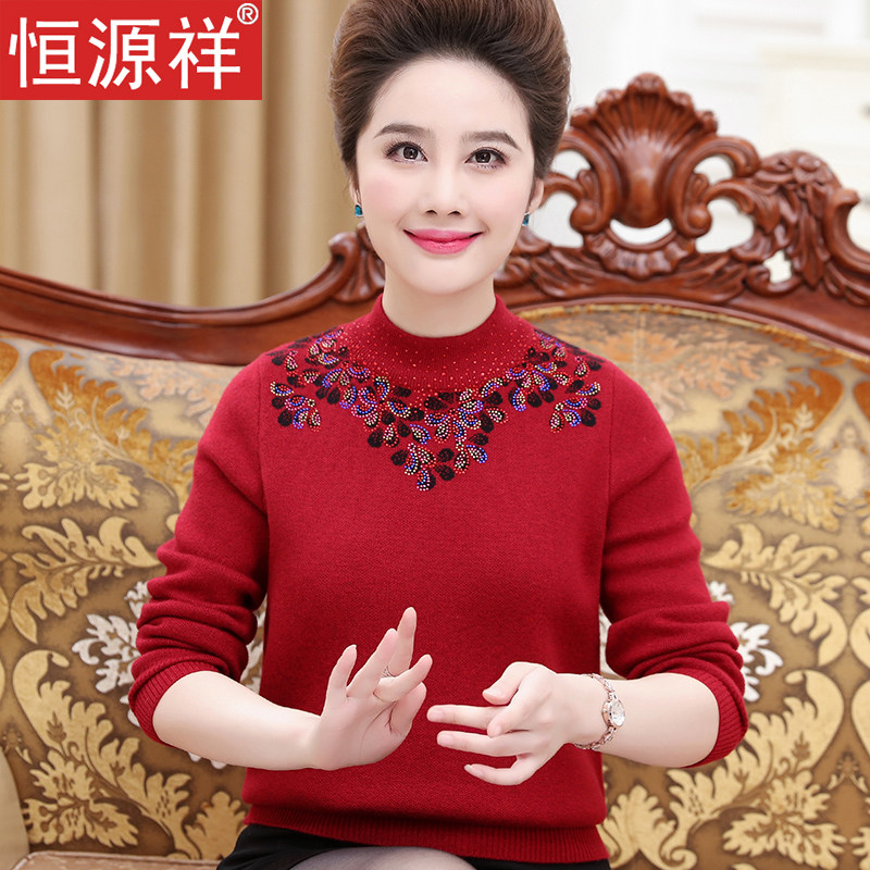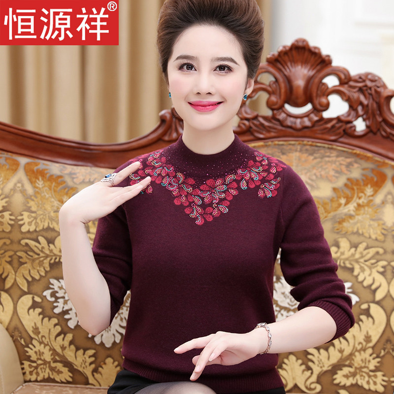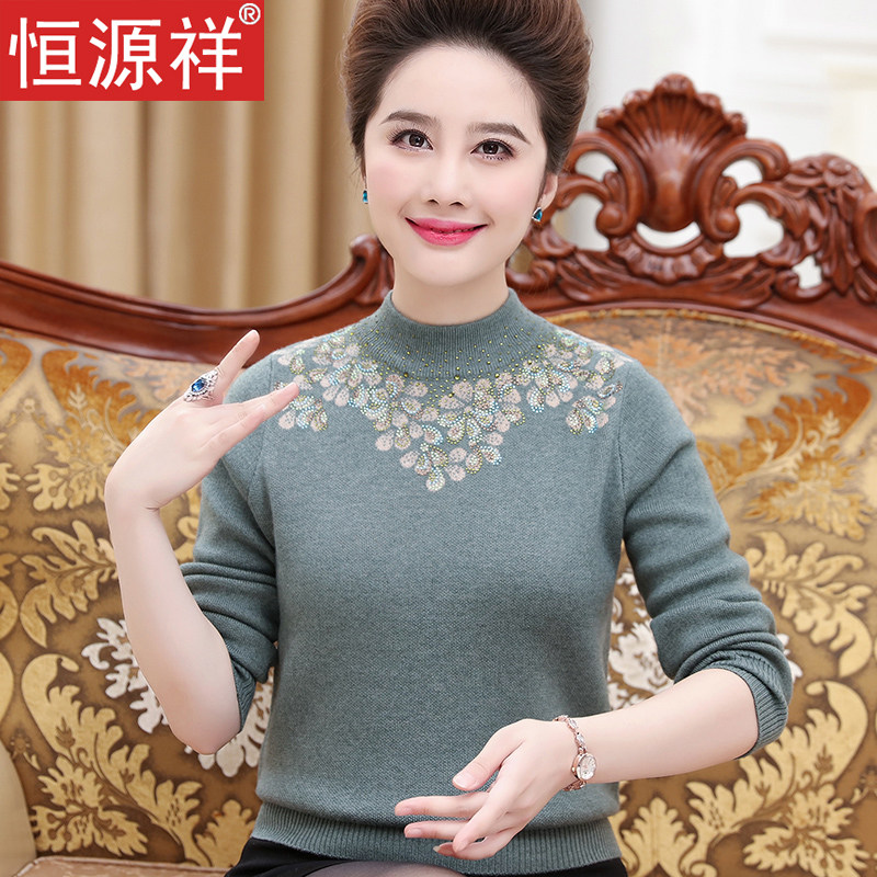 Hengyuan Xiang's middle-aged women's clothing winter sweater and half-height collar bottom-shirt thickened-knitted cardiovert wool cardio-hoodie mother's new sweater