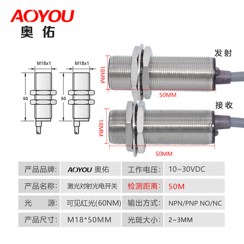 M18 laser photoelectric sensor AYJG-T18NO infrared visible light photoelectric switch sensor normally open 24V