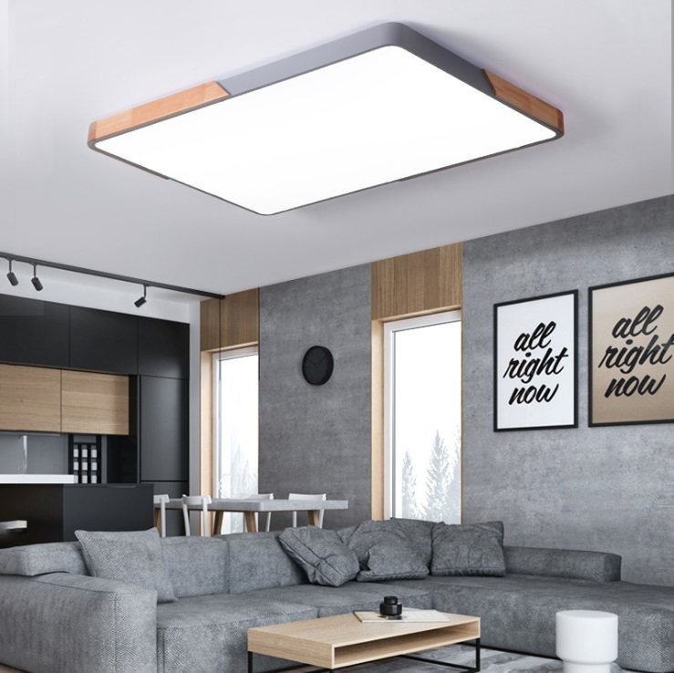 Nordic log ultra-thin LED ceiling lamp modern minimalist atmosphere rectangular living room lamp bedroom macaron lamps
