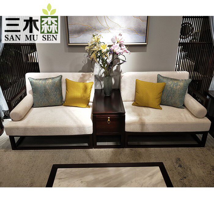New Chinese Solid Wood Sofa Combination Modern Chinese Minimalist Living Room Zen with light and luxurious and luxurious villa-like furniture