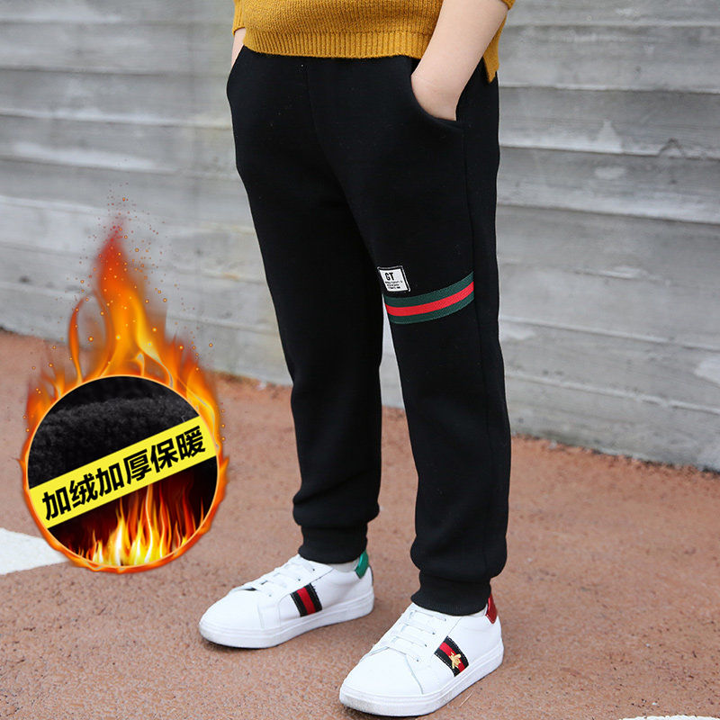 Boy Clothing Boy Plus Suede Pants Autumn Winter Clothing Integrated Suede 2021 New Foreign GentChildren Sports Long Pants Thickened