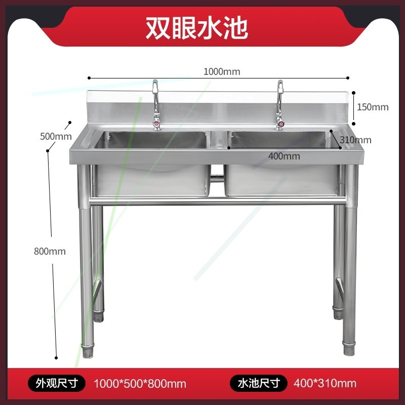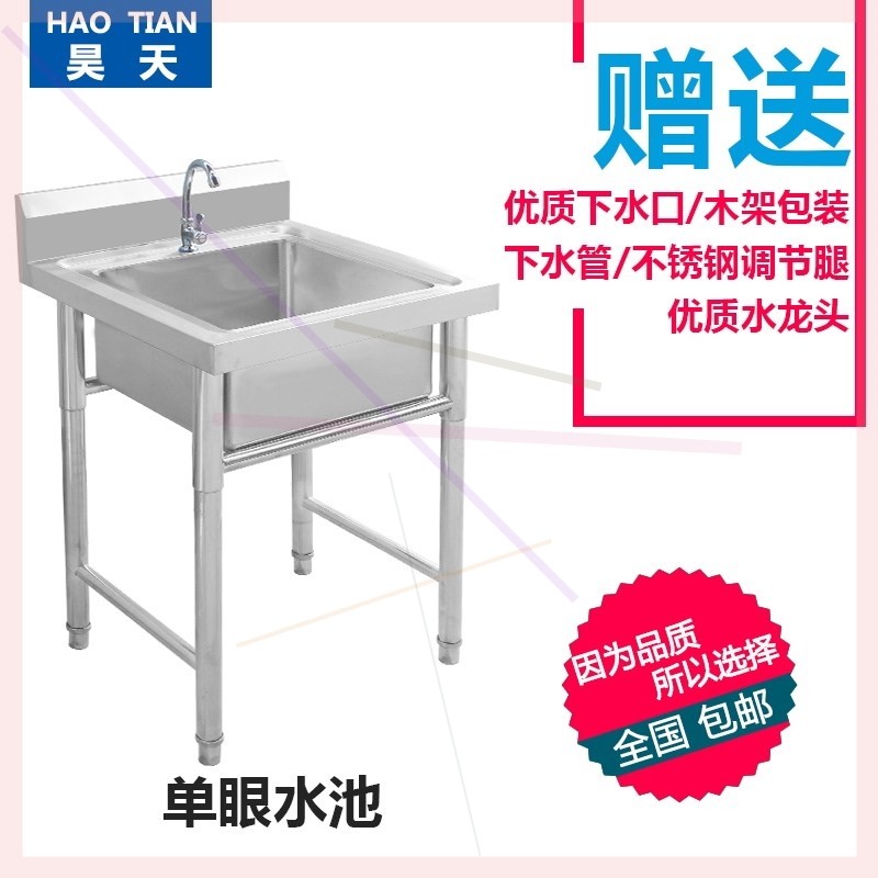 Thickened Dishwashing Pool Single Sink Commercial Kitchen Stainless Steel Sink With Bracket Integrated Domestic Sink Disinfection Pool