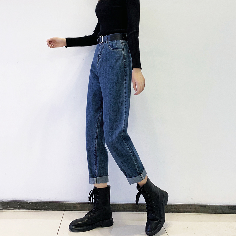 Loose Straight Barrel Jeans Woman 90% Chunqiu 2021 New Old Dad High waist display slim Roof Harlan broadleg pants