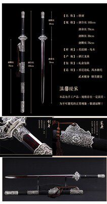 Baojian Longquan Wuwangshe town house pattern steel one long and short cold weapon decoration ornaments Qin and Han hard swords not edged