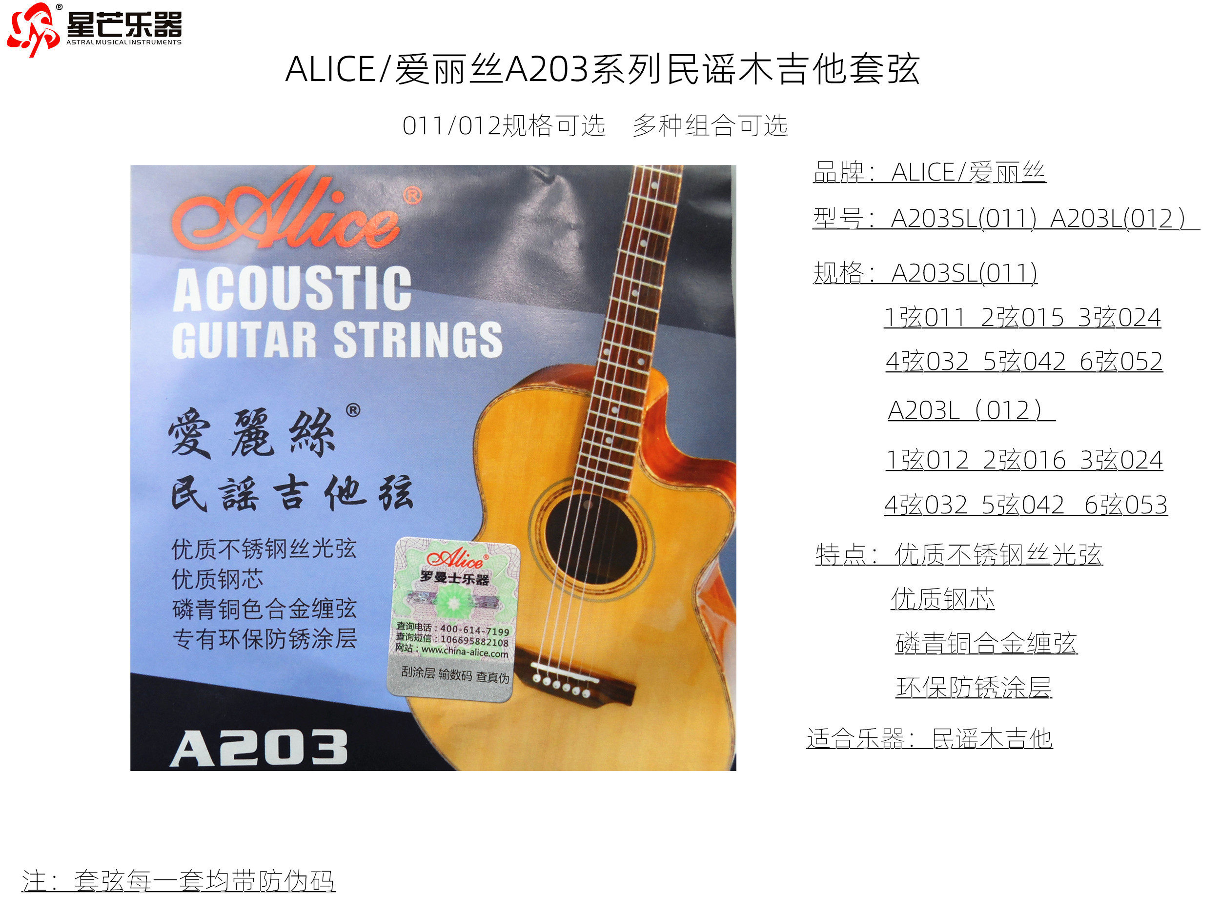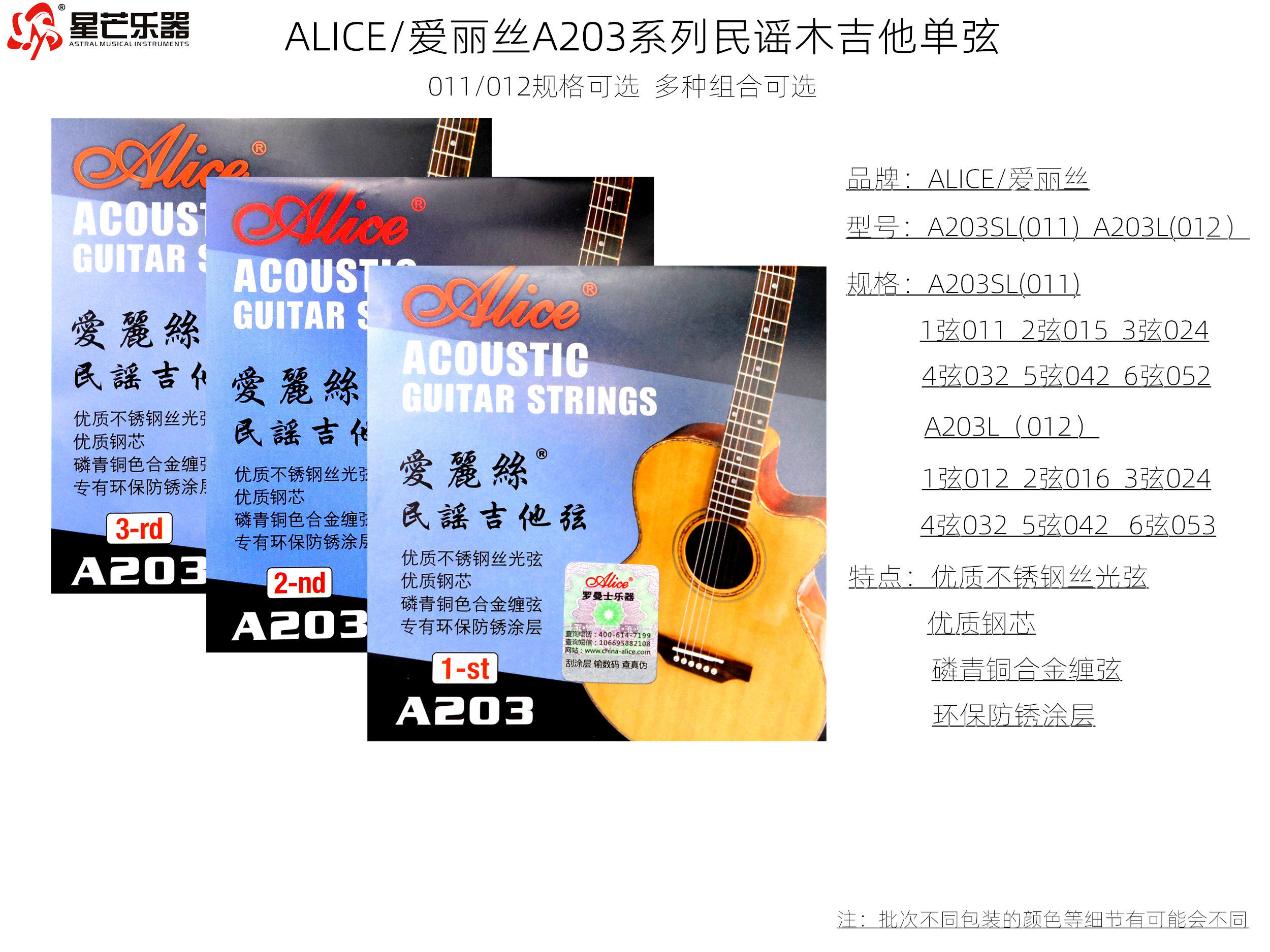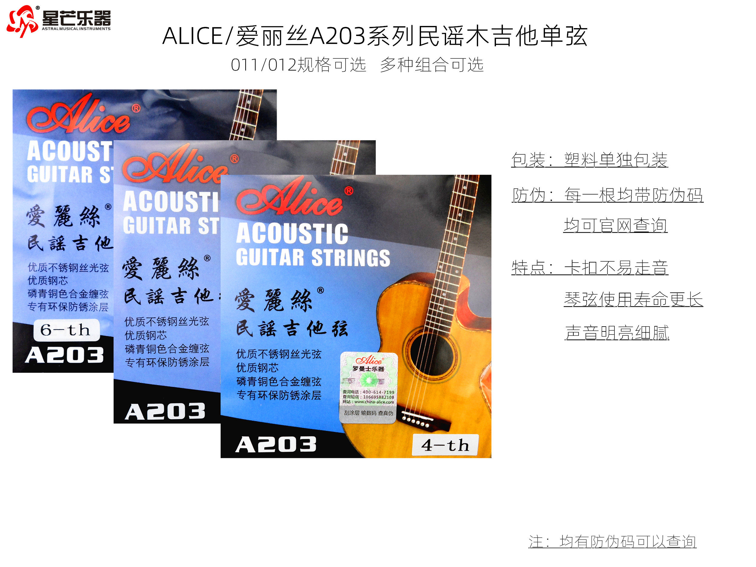 1 string A203 Alice Folk Guitar A set of single strings full set of guitar hyun 011 012