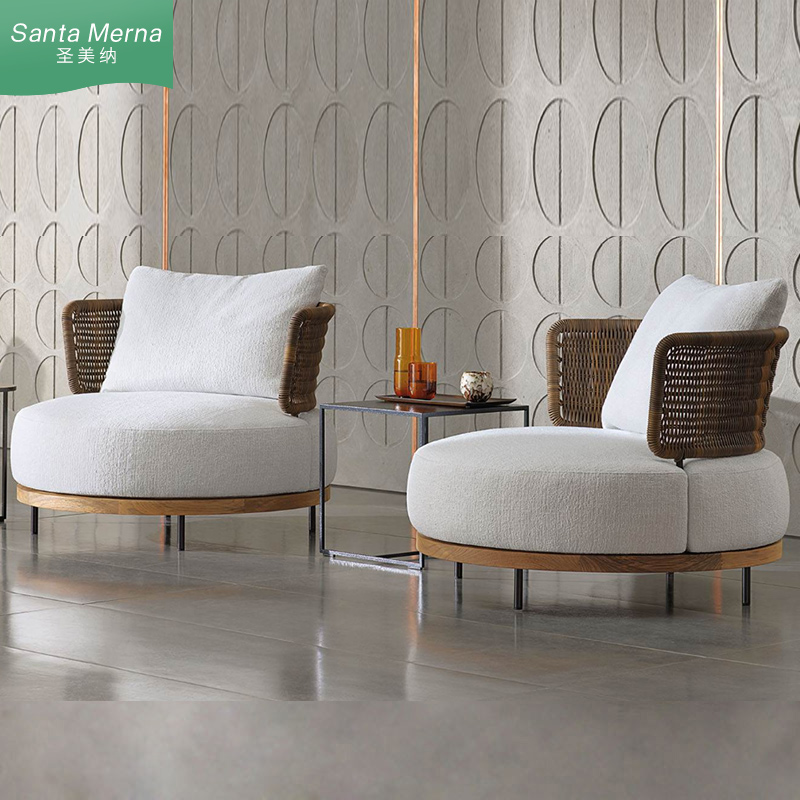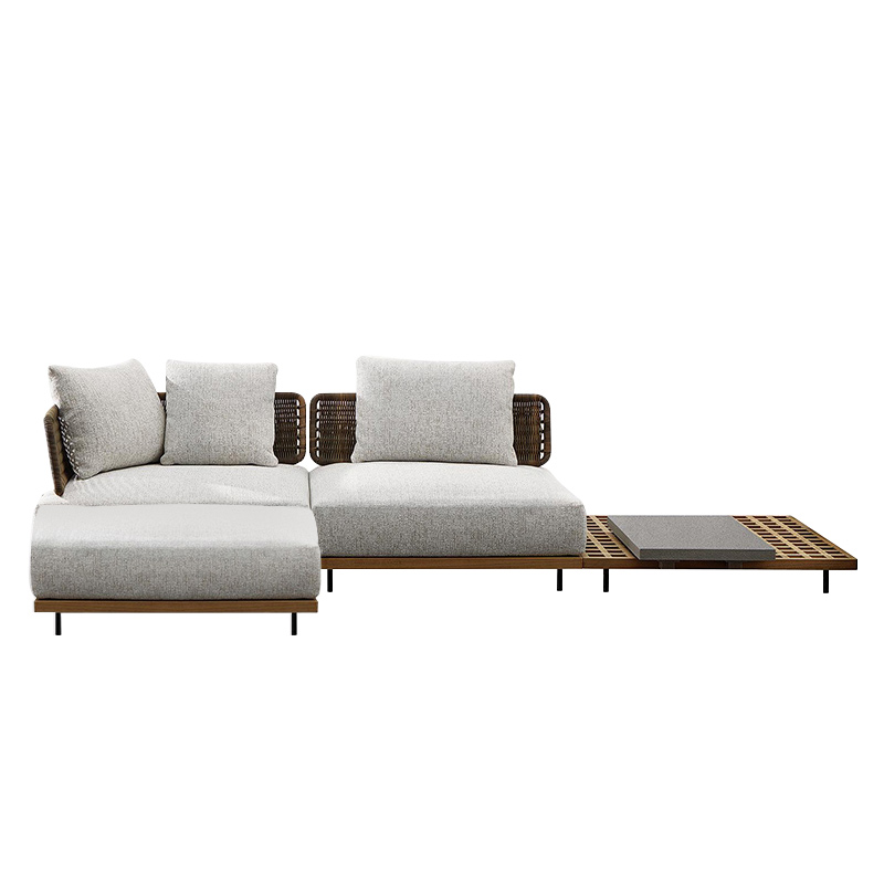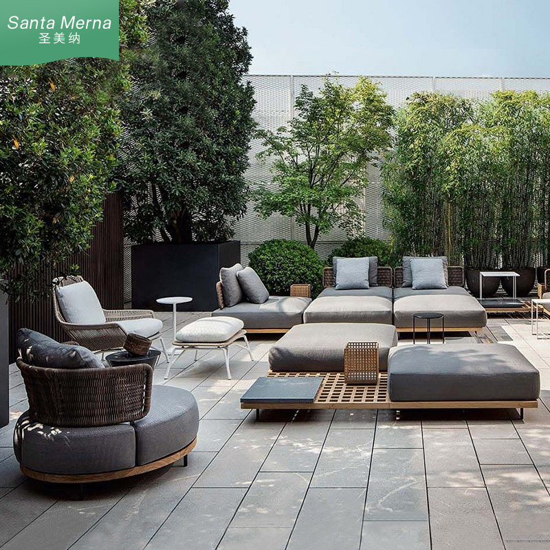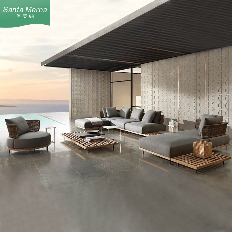 Outdoor teak solid wood sofa courtyard open air hotel garden villa kaza rattan woven corner sofa waterproof sun protection