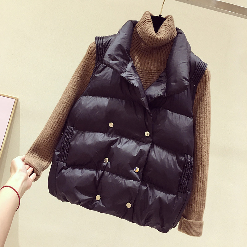 Down cotton horse clip women's short autumn and winter stand-up collar shop cotton jacket Korean version of the wild sleeveless vest warm vest vest jacket