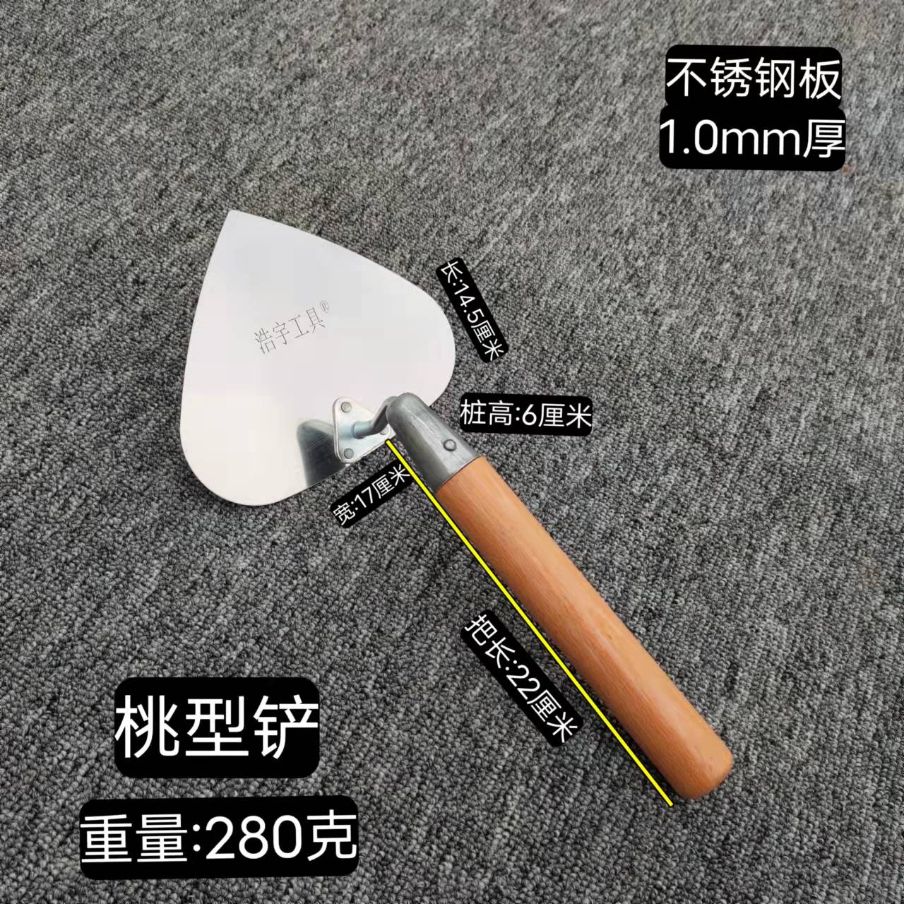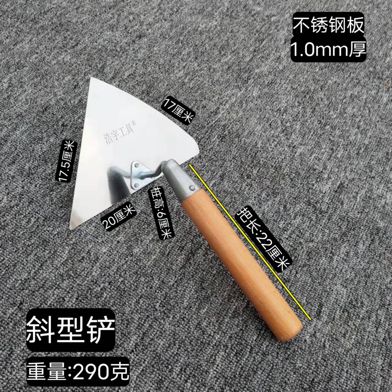 Stainless steel triangle shovel big shovel oblique shovel peach shovel tip shovel bricklaying shovel grey shovel left and right hand wooden handle bricklayer grey knife