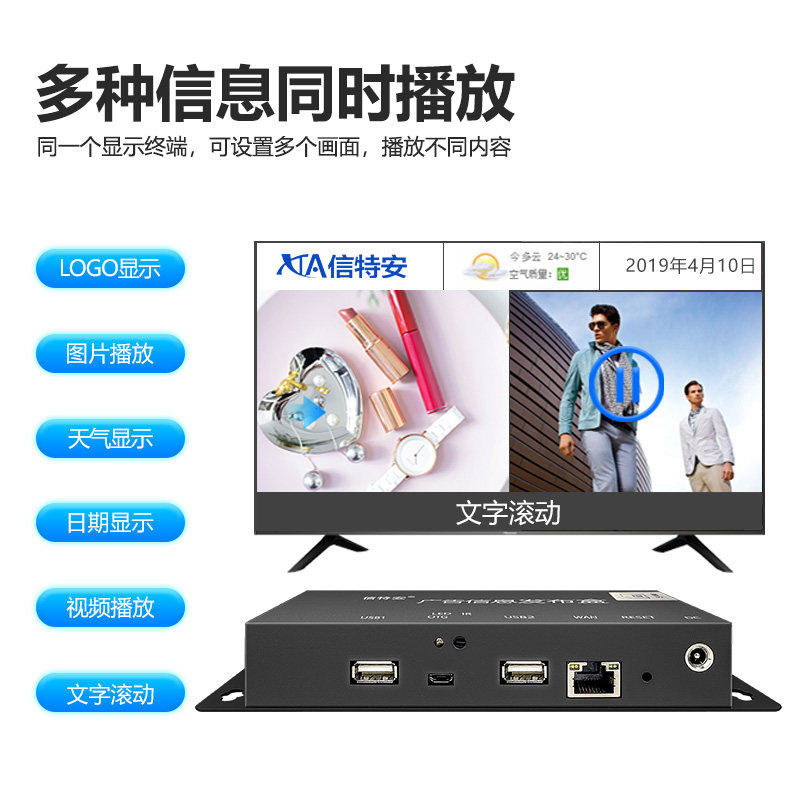 4K information release system terminal remote controller 4G card advertising player playback box split screen player