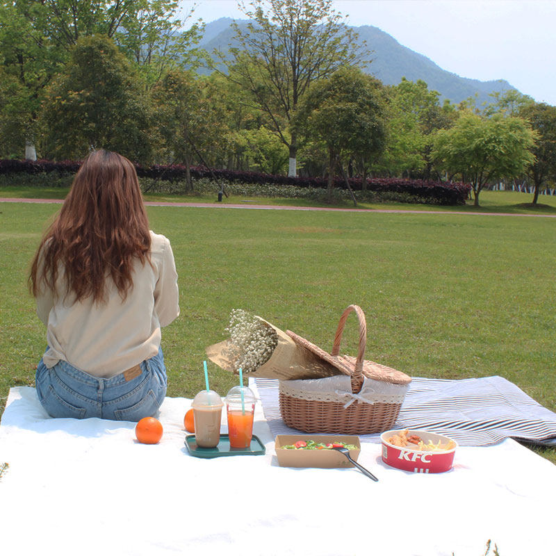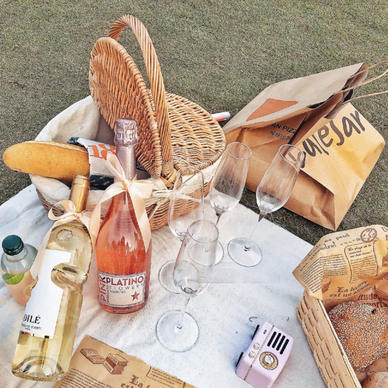 Picnic basket ins props Net red supplies full outdoor willow rattan pastoral style with lid bamboo basket tote basket