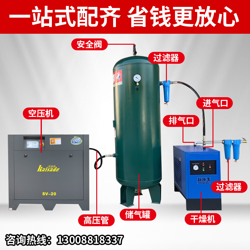 Economic model 7 5kW permanent magnet frequency conversion 7 5KW power frequency screw air compressor 7 5KW permanent magnet frequency conversion air compressor 7 5kW screw air compressor ➕ gas storage tank 7 5KW permanent magnet frequency conversion air compressor