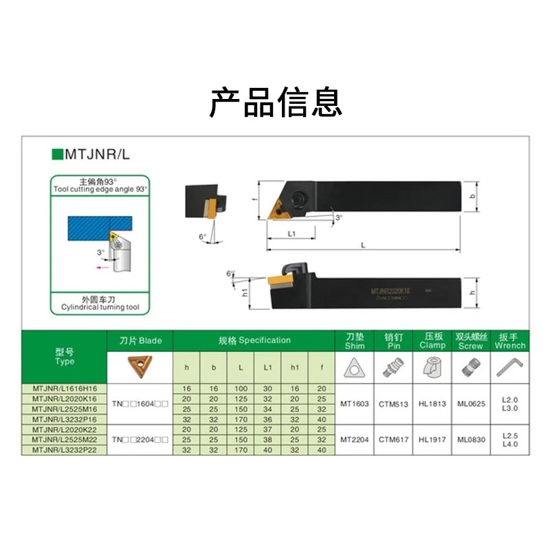 MTJNR L1616H16MTJNR L2020K16MTJNR L2525M16MTJNR L2525M22MTJN