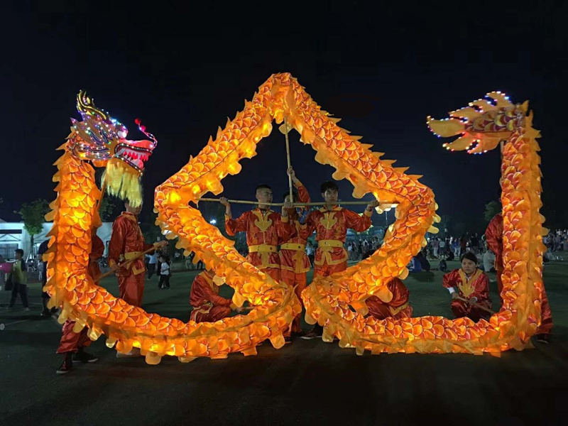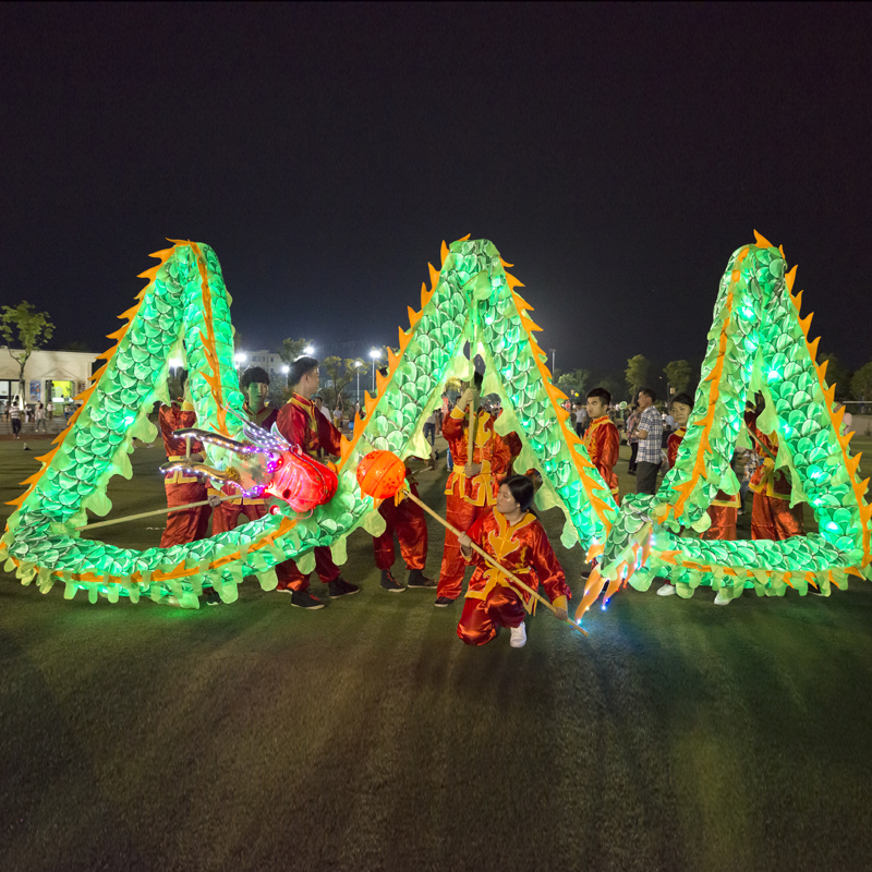9 sections of led light red silk cloth dragon 9 sections of led light yellow silk cloth dragon 9 sections of led light green silk cloth dragon 5 sections of led light silk cloth 6 sets of clothes 9 sections of led light blue silk cloth dragon 9 sections