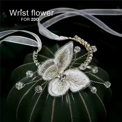 Mori Super fairy beauty wrist flower Bride wedding dress Korean wedding bridesmaid bracelet flower beautiful butterfly rhinestone Sisters Group