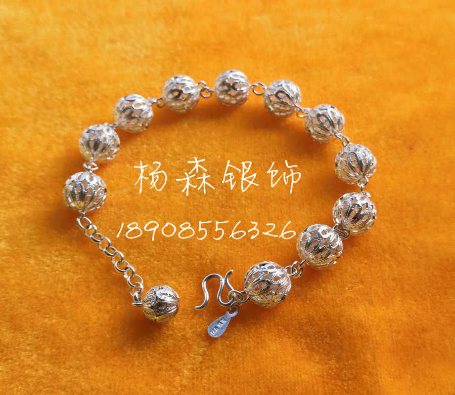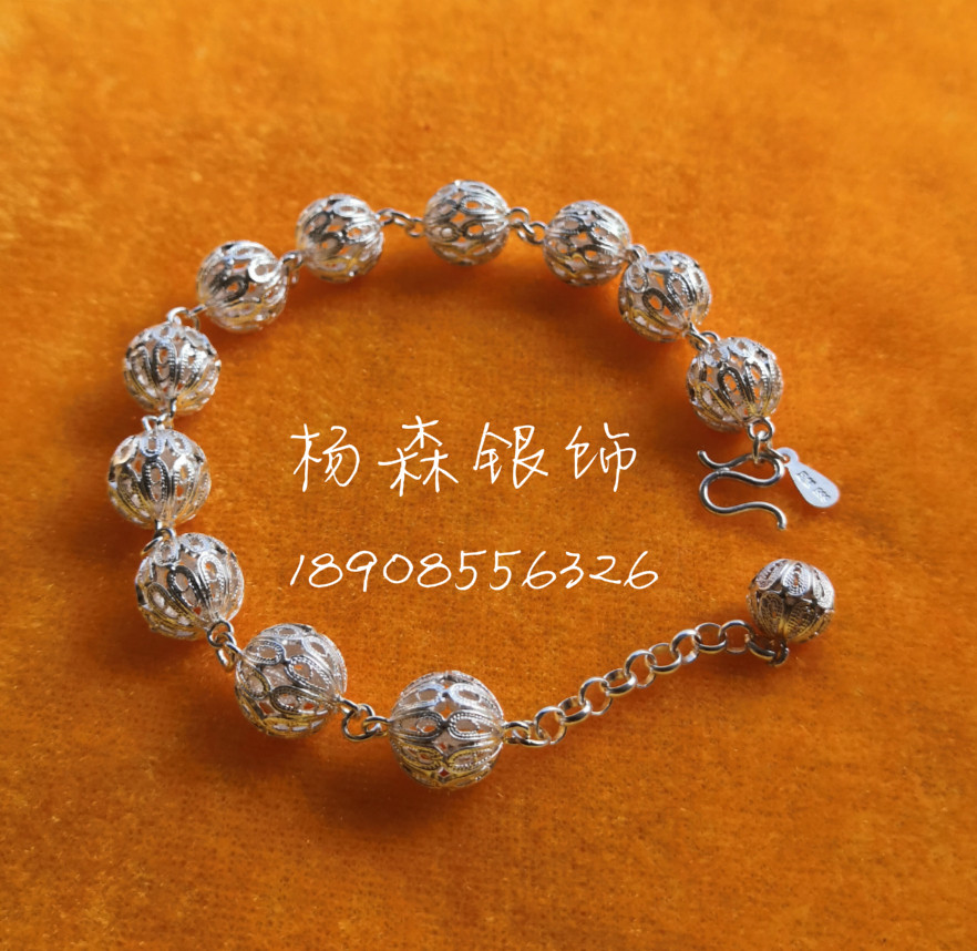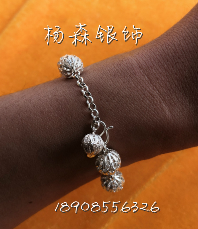 99 pure silver embroidered ball hand-made original handmade wire drawing Guizhou Miao silver accessories fresh and simple personality transfer chain