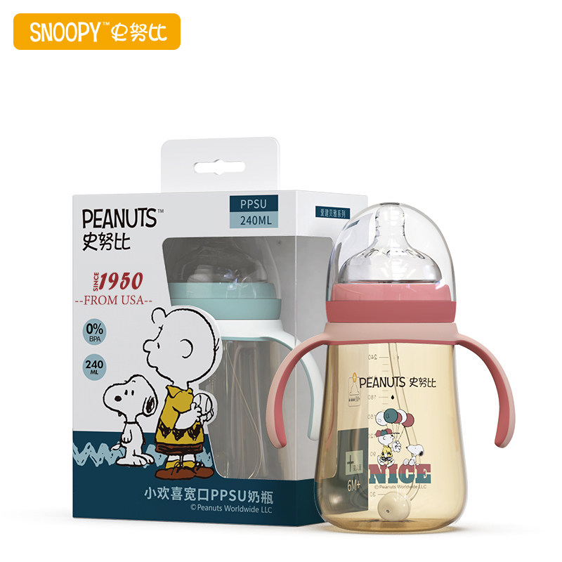 Snoopy bottle wide diameter PPSU bottle 0 - 3 year old baby anti - inflation gas band handle feeding newborn bottle