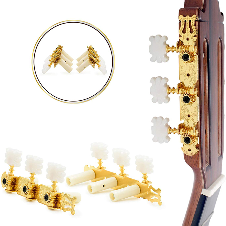 Classical guitar string twist long triple flower head plastic column head button tuner 3-string quasi tuner gold