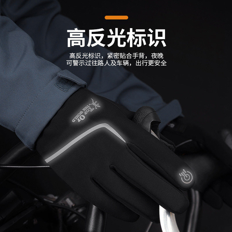 New cycling gloves winter outdoor plus wind and waterproof warm and reflective anti-slip touch screen skiing