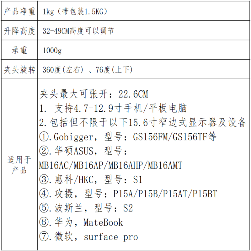 Whale Gobigger 15.6 inch monitor stand surface pro12.9 tablet MateBookE