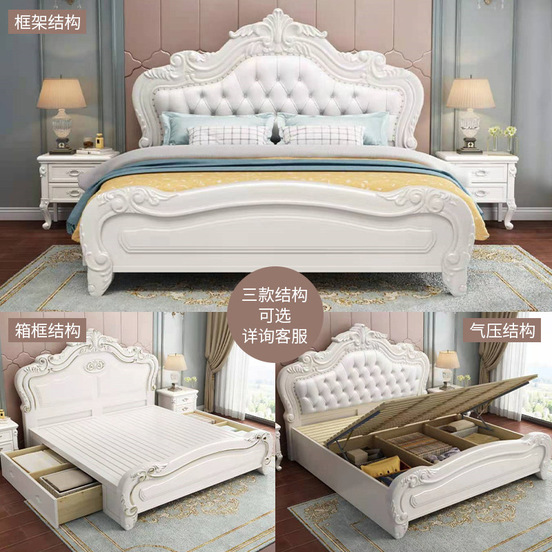 European solid wood bed American 1 8 meters double bed Leather soft bag bed Master bedroom high box storage 1 5 meters factory direct sales