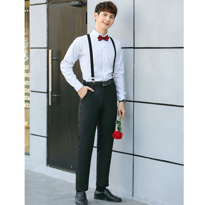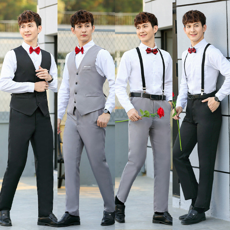 Long-sleeved shirt Black suit pants Baby bag bow tie Long-sleeved shirt Gray pants Baby bag bow tie long-sleeved shirt Black pants Black armor bow tie long-sleeved shirt Gray pants