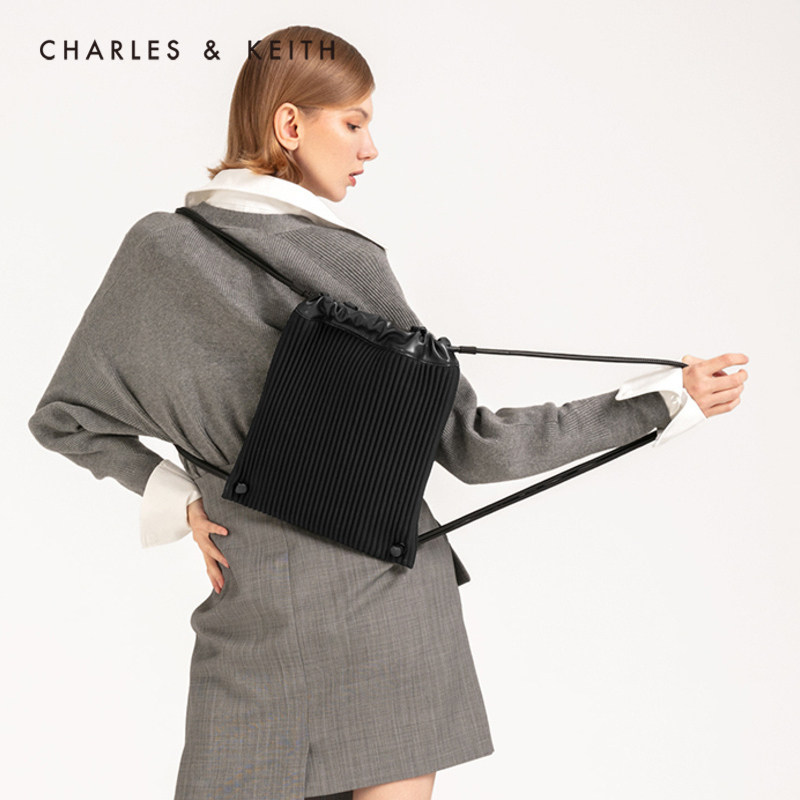 CHARLES & KEITH CASUAL VINTAGE CK2-60671066 STRIPE PORTABLE shoulder backpack for WOMEN