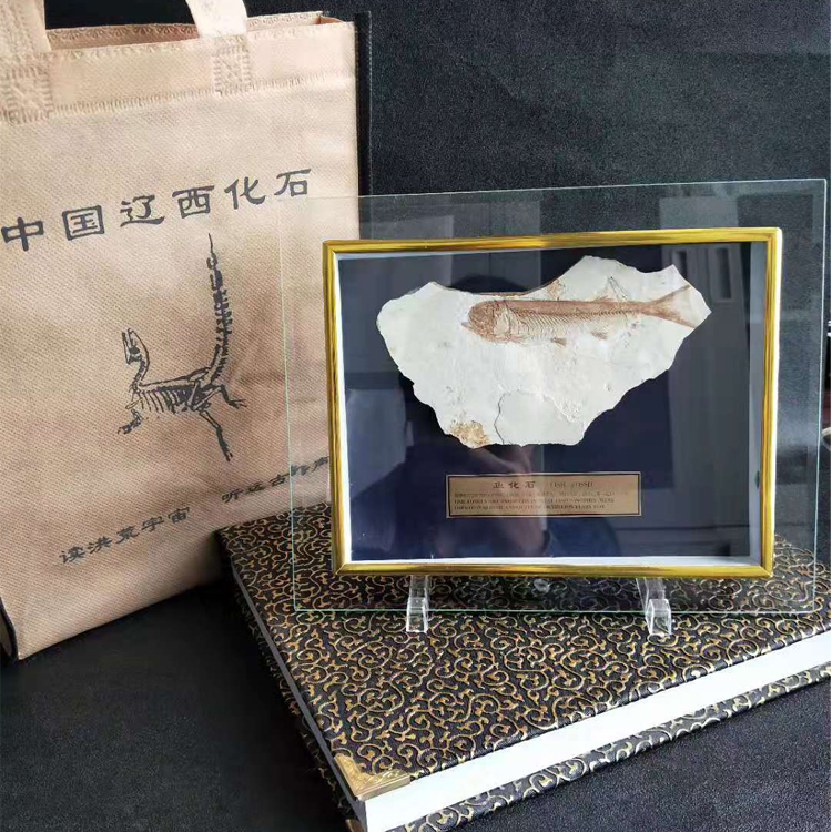Special price paleontological animal large wolffin fish fossil specimen rough stone mounted mirror frame with gift box gift ornaments